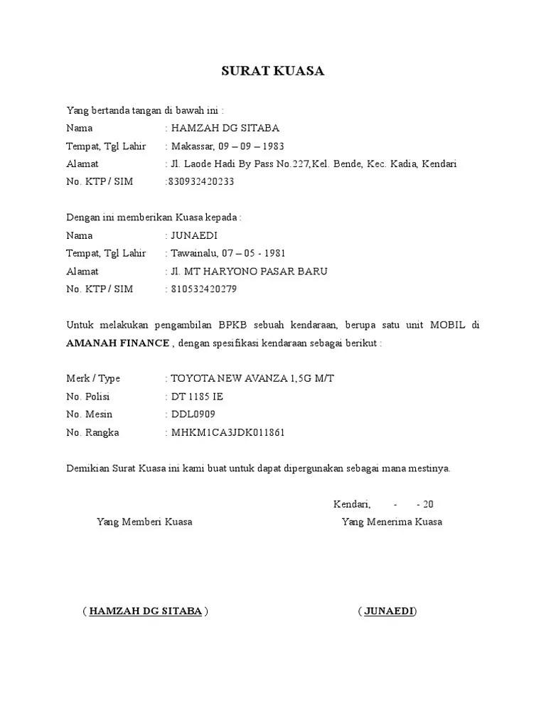 Surat kuasa yang digunakan untuk pengambilan bpkb harus sah secara hukum oleh sebab itulah surat kuasa pengambilan bpkb harus disertai dengan matari 6000. Jika tidak ada dokumen, kemungkinan besar itu adalah kendaraan curian. Namun jangan khawatir, kalian bisa kok membuat surat kuasa agar orang lain bisa membantu kalian mengambil bpkb. Biodata pemberi kuasa selaku pemilik kendaraan serta penerima kuasa dicantumkan dengan jelas. Contoh surat kuasa pengambilan bpkb motor milik perusahaan dalam sebuah perusahaan tentu ada yang namanya kendaraan operasional, dan itu milik perusahaan sendiri. Selain itu surat perjanjian leasing mobil di atas juga menggunakan bahasa yang sah dan resmi. Ada banyak format contoh surat kuasa pengambilan bpkb motor maupun mobil untuk leasing di indonesia. Contoh surat kuasa pengambilan bpkb motor. Yang bertandatangan di bawah ini: Setelah selesai, surat tersebut bisa diambil. Contoh surat kuasa pengambilan bpkb mobil motor 2. Contoh surat kuasa pengambilan bpkb mobil di leasing atau kantor from img.cintamobil.com surat keterangan kami yang bertanda tangan dibawah ini : Lantas bagaimana bentuk dan contoh suratnya dalam melampirkan kuasa mengambil bpkb.